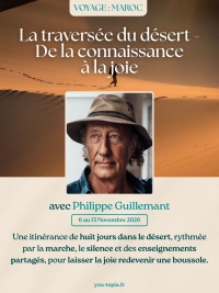 - Conférence organisée par Vertical Project le 14 mars 2026 à Toulouse - Atelier synchronicité le samedi 28 mars à Paris - Conférence le dimanche 29 mars au Grand Rex à Paris - Conférence et atelier le 31 mars et 1er avril en Bretagne (plus d'infos à venir) - Retraite YOU-TOPIA du 10 au 13 septembre 2026 à l'abbaye de Sylvanès (12) - Voyage au Maroc avec traversée du désert organisée par YOU-TOPIA *** De la connaissance à la joie (Masterclass de 22 vidéos de 55 mn) *** Sélection d'interviews récents *** Interview pour la chaine Antithèse (février 2025) *** Interview pour la chaine Revhealing (juin 2024) *** Interview par le média Epoch Times France (novembre 2023) ***** Sélection de conférences récentes *** Conférence à Thonon-les-Bains (février 2025) *** Conférence au domaine du Plantier en Haute-Provence (juillet 2024) *** Conférence à Angers (mars